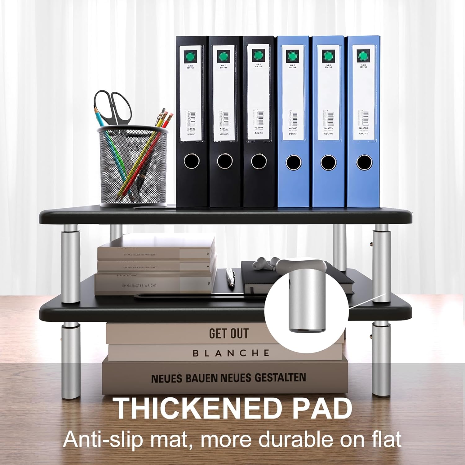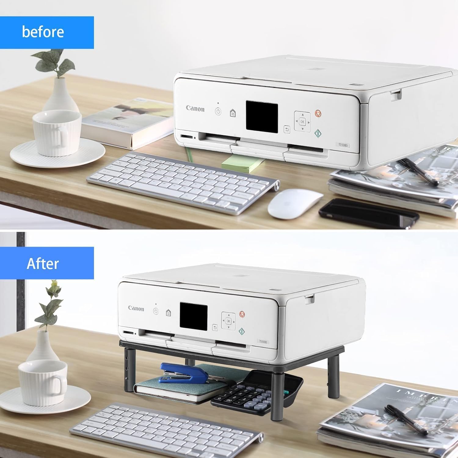 Suptek desk screen riser for PC Laptop PC Printer can add extra space underneath the platform for a neat surface.