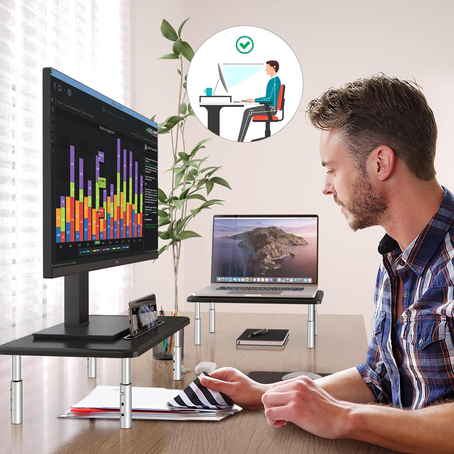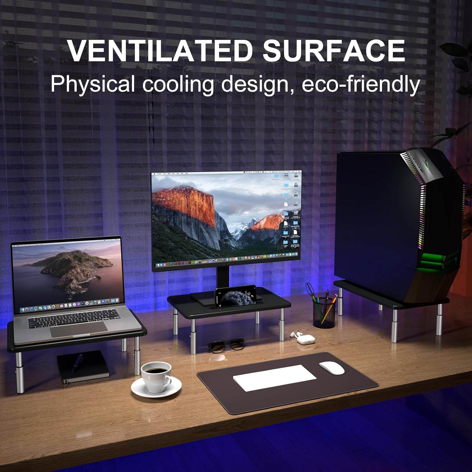 • Computer Monitor Stand Riser,Monitor Riser for Laptop, Printer, Notebook and All Flat Screen TV Display with Vented Platform,3 Height Adjustable Laptop Riser,1 Pack,Black(MST003)